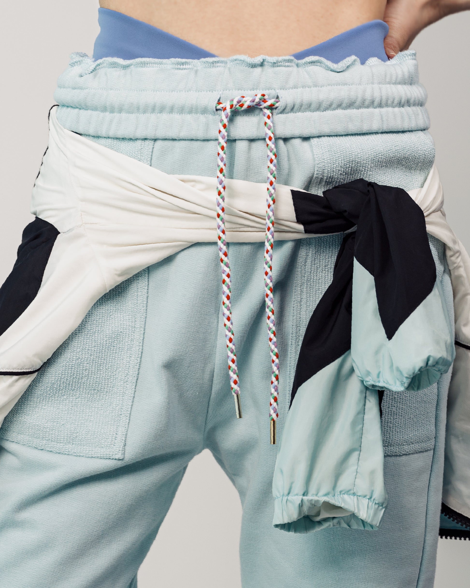 どんなエクササイズにも対応できる動きやすさとおしゃれさを兼ね備えたサルエルシルエットのジョガーパンツです。幅広のウエスト部分はカラフルなドローストリングを見せたり、折り返してもOK、自由なスタイリングが楽しめます。